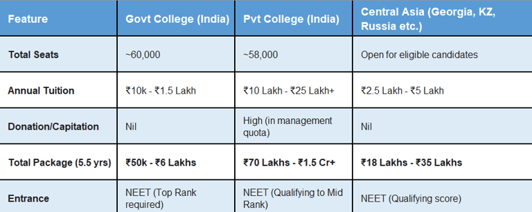 Total MBBS Seats in India: ~1,18,000 (approx. split: 51% Govt, 49% Private/Deemed).